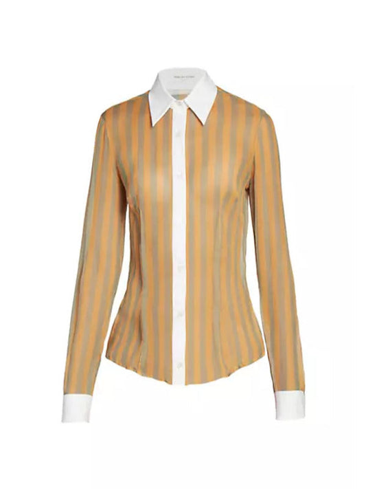 Poppas House 2025 Essence Atkins Striped Silk Collared Blouse