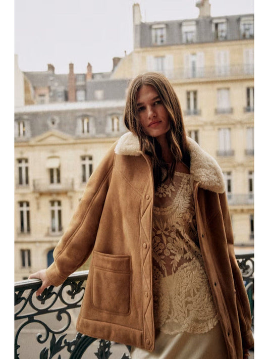 Playing Nice 2025 Niamh Algar Camel Suede Coat