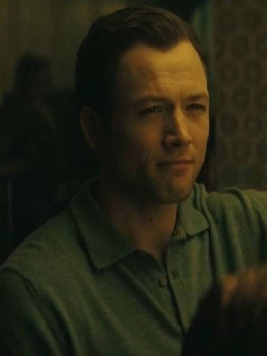 Smoke 2025 Taron Egerton Grey Polo Shirt