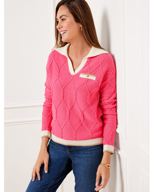 The Today Show 2025 Anne Drewry Pink Cable Knit Polo Sweater