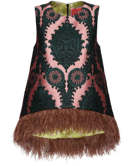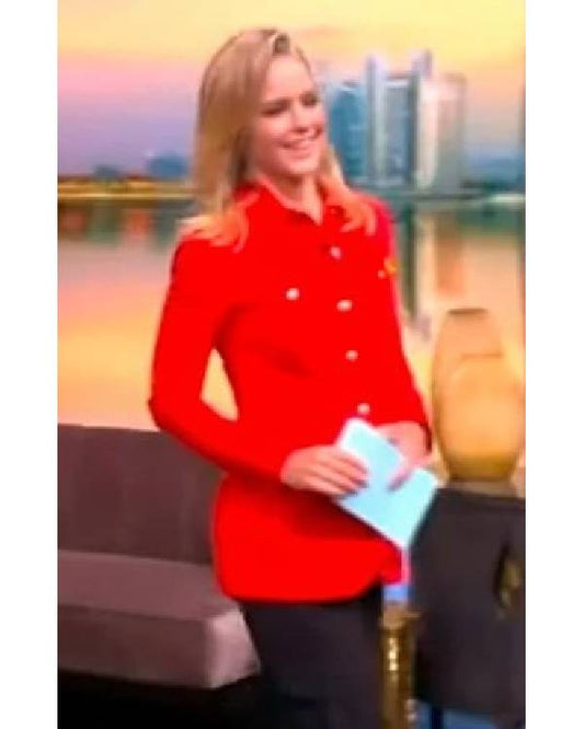 The View 2025 Sara Haines Pink Printed Feather Trim Top