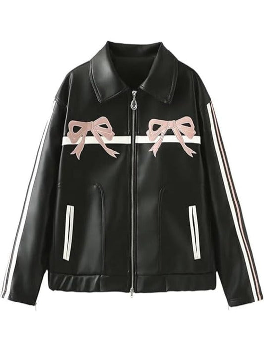 WWE NXT 2025 Carla Gonzalez Pink Bow Black Leather Jacket