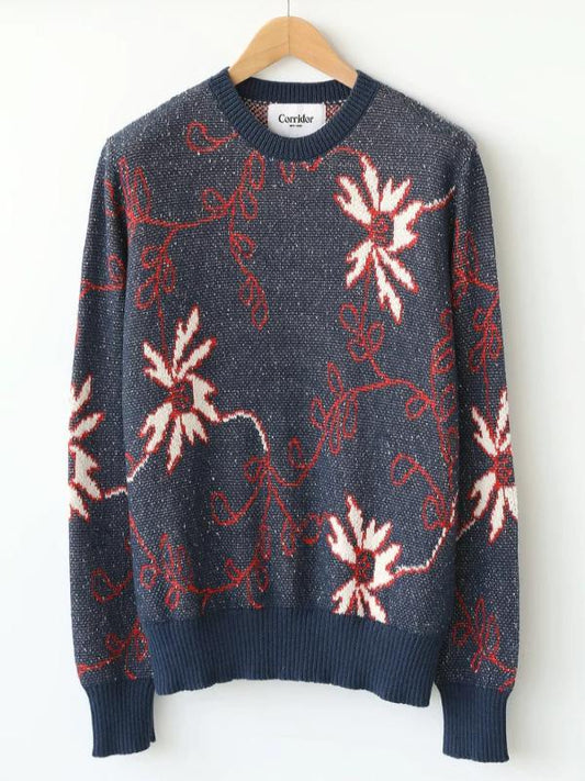 �TOILE 2025 Gideon Glick Navy Blue Floral Print Sweater