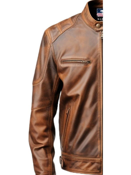 Men Vintage Brown Biker Leather Jacket - Vintage Brown Jacket
