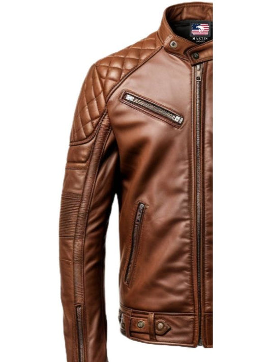 Men Brown Racer Cafe Moto Leather Jacket - Biker Jacket Men