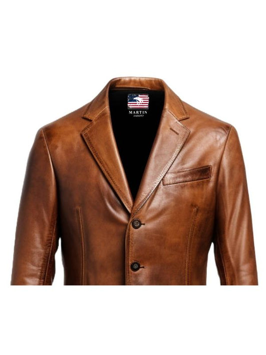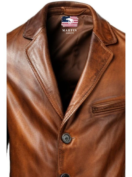 Men Brown Vintage Leather Blazer - Brown Leather Blazer