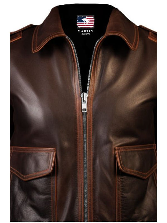 Women Bomber Leather Jacket- Brown Leather Jacket for Women