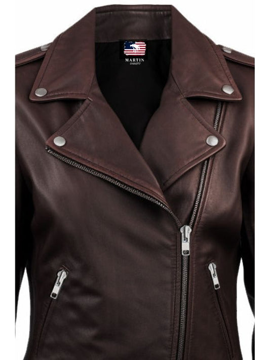 Women Biker Leather Jacket Dark Brown
