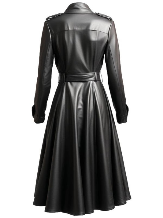 Women Designer Black Long Leather Coat