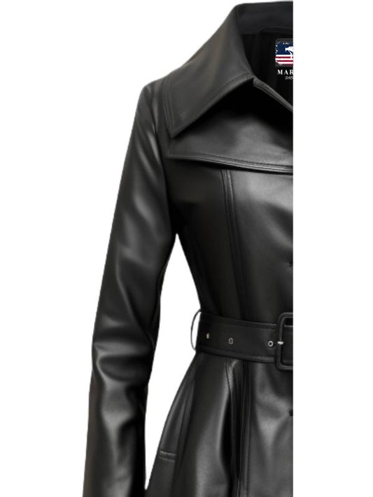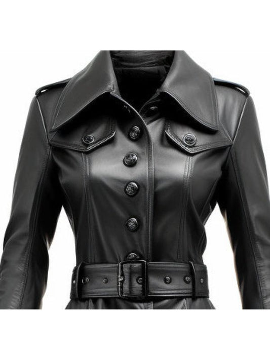 Women Black Leather Coat - Long Leather Coat