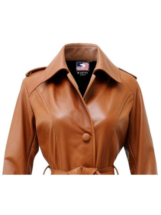 Women Tan Leather Coat - Leather Coat for Women
