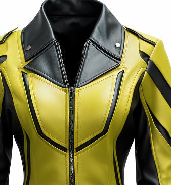 Womens Faux Leather Jacket - Yellow Black Leather Jacket