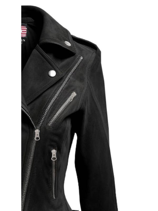 We craft premium women’s slim leather biker jackets from genuine leather, focusing on perfect fit and timeless style.