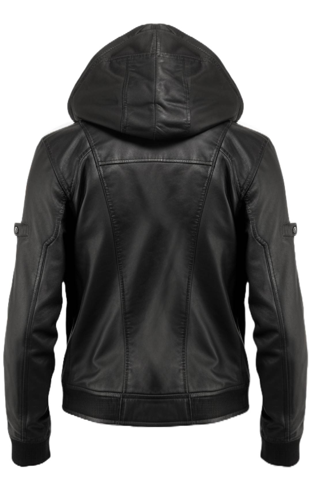 Men Black Hooded Leather Jacket - Hooded Black Jacket