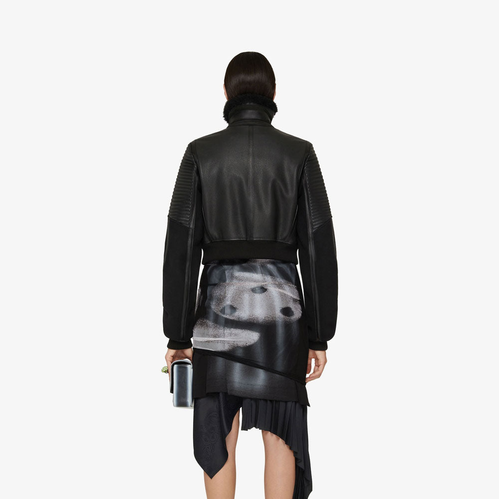 Women's Black RAF Sheepskin Shearling Aviator Motorbike Leather Bomber Jacket